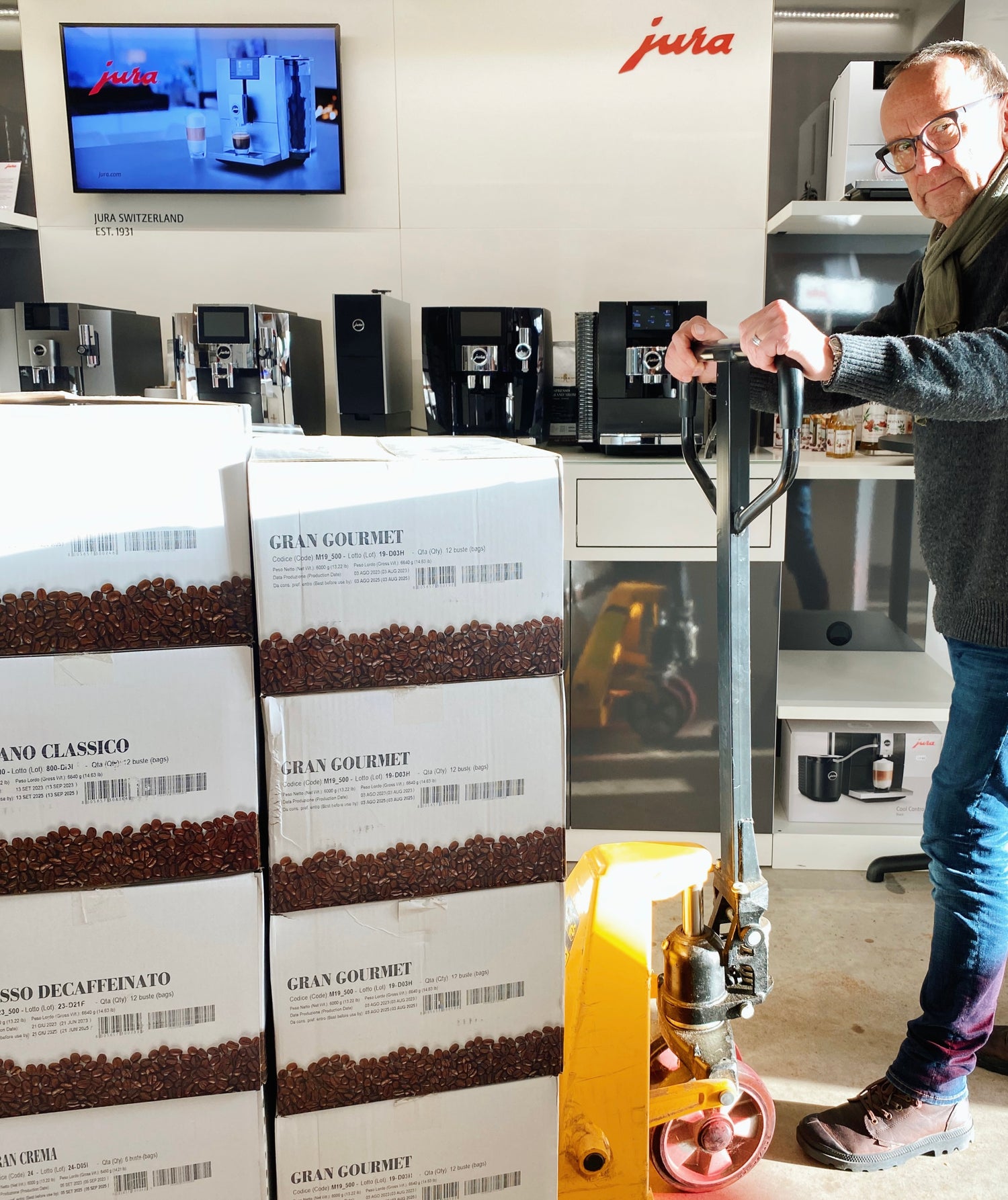 Nous avons acheté une machine Jura il y a 2 ans chez Caffe Mobile. Très bons conseils reçus, la machine correspond parfaitement à ce qu on cherchait. L accueil au magasin à été très sympathique.Il y a qques semaines, la machine Jura E8 a fait un bruit légèrement différent du bruit habituel. J ai rappelé Caffe Mobile qui m a conseillé de la ramener au plus vite car on était à quelques jours de l expiration de la garantie. Caffe Mobile s est chargé du renvoi vers le fabricant et je suis repassé la chercher 2 semaines plus tard. Gros étonnement sur place : un défaut de fabrication à été identifié par Jura. Sans hésitation ni aucune discussion, ils ont remplacé la machine par un modèle identique E8 neuf !Au final nous sommes très contents tant des services de caffe Mobile très efficaces que du service après vente de Jura. Merci !