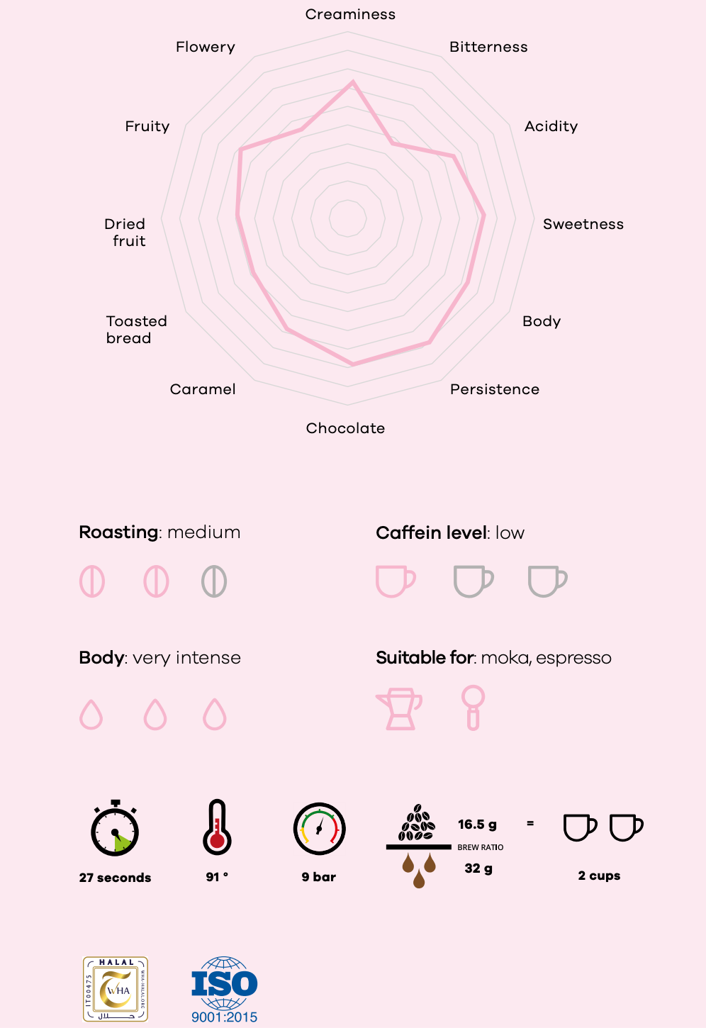 Le résultat dans la tasse est un corps fort, une acidité légère et agréable, suivie d’une
